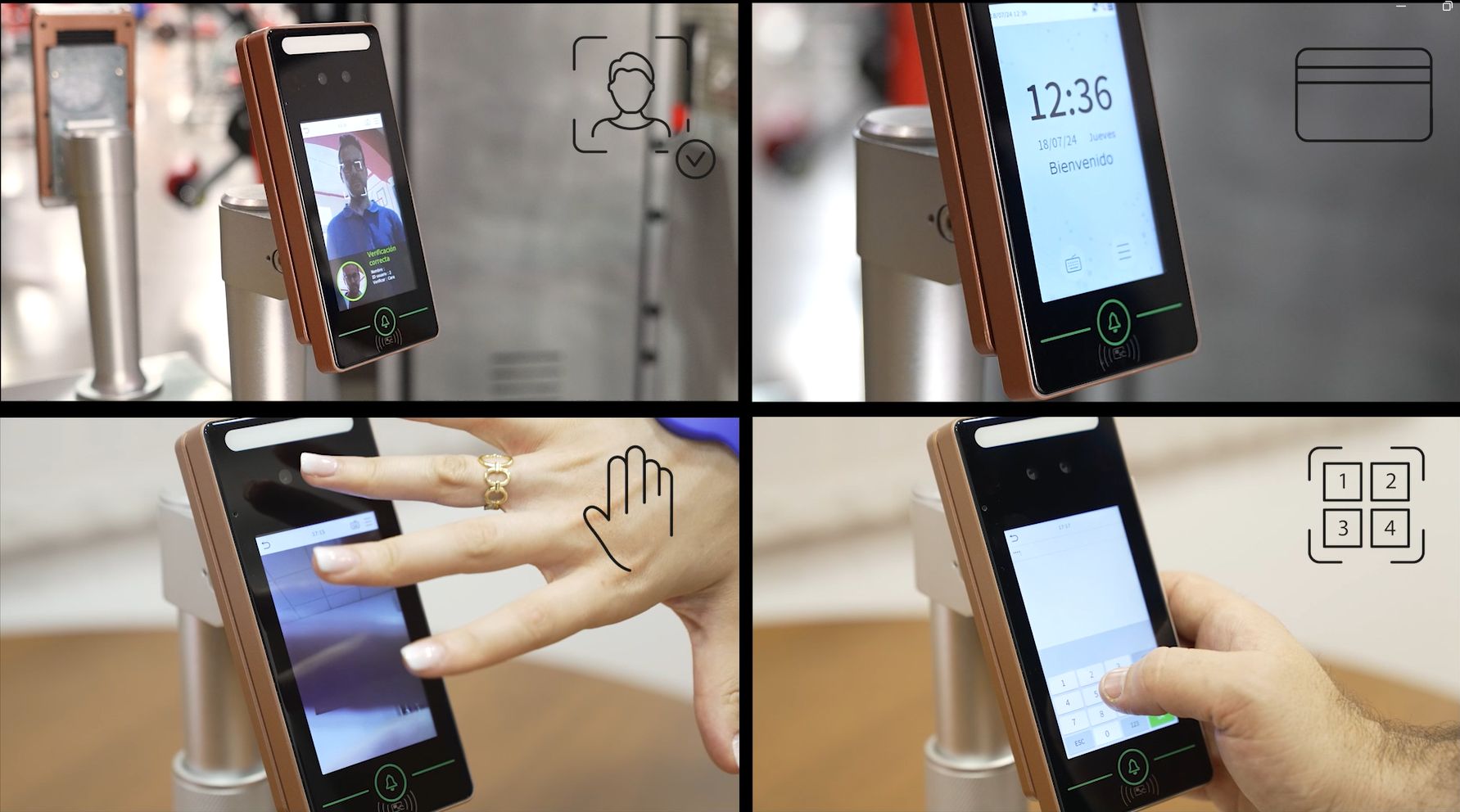 Sistemas de biometría, reconocimiento Facial, huella dactilar, contraseña y tarjeta
